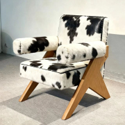Lc435 PU Wooden frame high density spong strip genuine leather armchair lounge chair